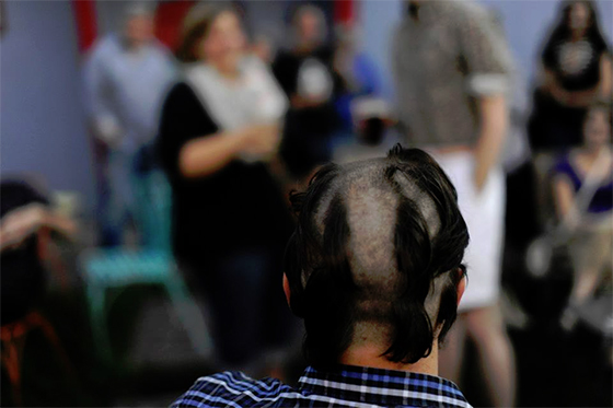 Photo: Jena McShane, McShane Photography. After a few clipper passes had been made on his head, Sam offered to leave his hair the way it was for a week for a $1,000 donation. When no one took him up on the offer, he reduced the price by $50 with each pass. At $500, audience member Mike Ware took him up on the offer. It looked truly awful. If you recently saw someone with the worst haircut you’ve ever laid eyes on, it was probably Sam. I’m sure he is very relieved to be bald after a week rocking random chunks of hair.